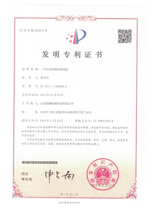 昱嘉榮譽——專利證書