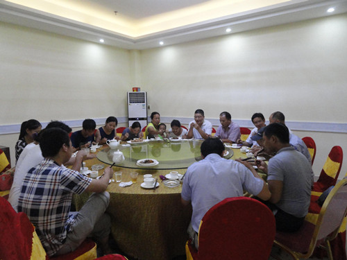 晚上全體員工在一起聚餐,談?wù)撝髯缘男牡茫咳四樕鲜幯?/span>